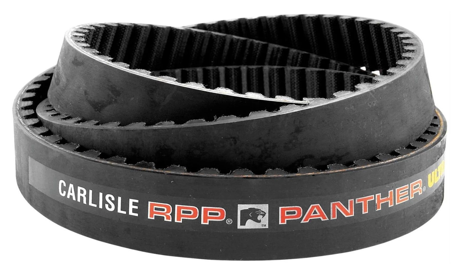 The improved Carlisle Reinforced Parabolic Profile RPP Panther design features Ultra-Cord tensile members that don’t stretch or shrink, thus reducing the strain on bearings, shafts, and other drive components. Paired with their Able compound, which is an advanced polymer that resists tooth shear, adding to the belt’s stability.