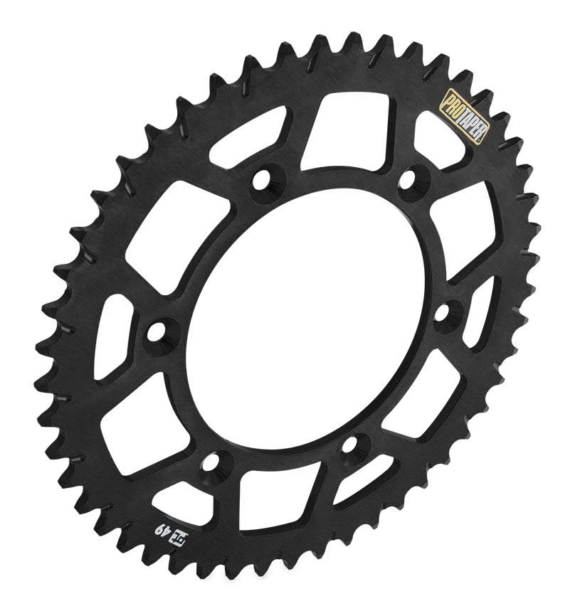 ProTaper Race Spec (RS) Rear Sprockets are precision CNC machined to strict tolerances from high quality alloy that has been specially formulated for serious off-road riding. The unique manufacturing process paired with quality materials results in the perfect balance and optimization of key features like load distribution, reduction of un-sprung rotating mass, and tooth endurance.