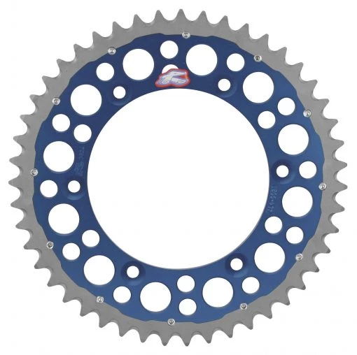 The Renthal Twinring Rear Sprocket is a long lasting durable Off-Road sprocket that was developed and tested over the course of 5 years. The unique flat face two piece design keeps weight to a minimum and maximizes durability all while keeping a narrow profile. The outer steel ring is expanded at 200°C and then fitted to the aluminum inner before cooling, this process creates a permanent bond while flat socket set screws prevent lateral movement between the rings.
