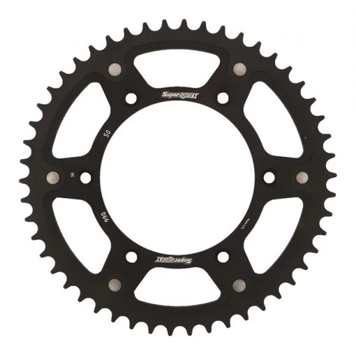 The inner ring of the Stealth sprocket is constructed from lightweight aluminum with CAD-designed, weight-saving cutouts, minimizing unsprung weight. To ensure longevity and durability, the outer ring is made of much more resilient steel. Adding to the steel’s resilience is SuperSprox’s special three-step, Tri-Zinc finishing. First, the steel ring is coated in a mixture of  silver and nickle, which fights corrosion. The second step in the coating process is a black passivation that fills the micro pores in the steel’s surface, ensuring abrasive rust and road debris aren’t able to become lodged in between your drive components for long enough to cause serious damage. Finally, the steel is finished with a slick, smooth top coat that helps keep it clean and looking good for years to come.Â